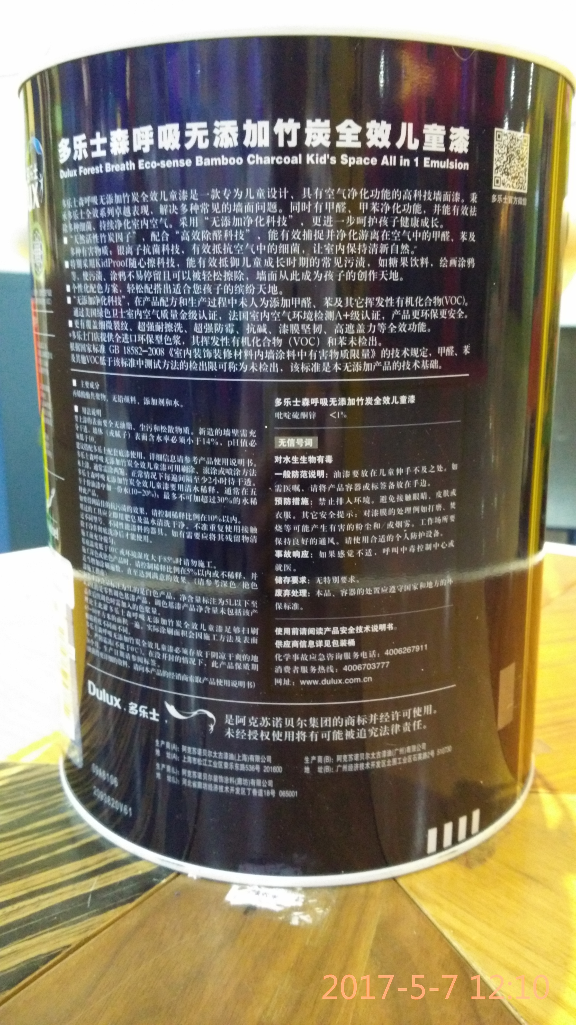 多乐士竹炭森呼吸全效儿童漆无添加墙面漆,5L/桶